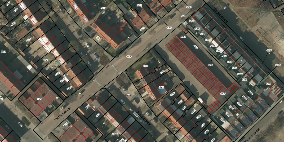 Gebruik de zoekbalk of klik op een perceel voor informatie over de adressen binnen dit perceel.