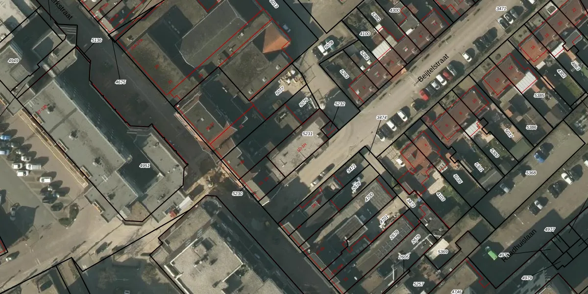 Het perceel waarop Beijtelstraat 1-F staat heeft een oppervlakte van 218 m². Dit is een middelgroot perceel. De perceeloppervlakte wordt geregistreerd door het Kadaster. Gedetailleerde informatie over de maten van dit perceel kunt u vinden in het rapport Kadastrale kaart met maatvoering van Beijtelstraat 1-F.