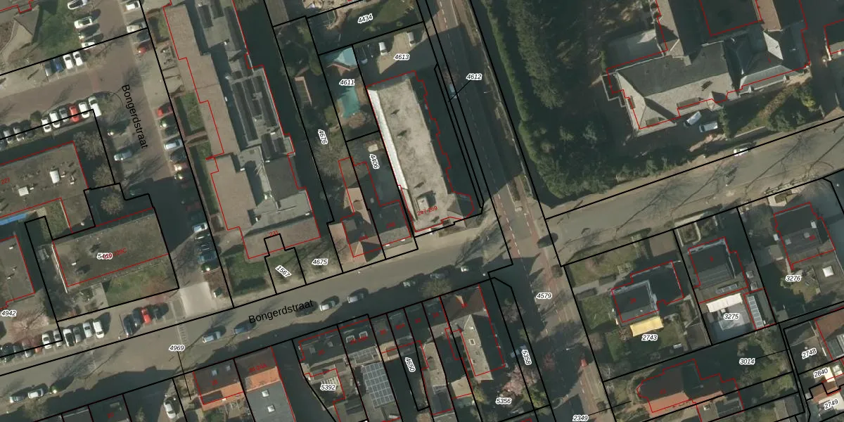 Bongerdstraat 265 is gelegen op kadastraal perceel TGL00B4613. Deze kadastrale aanduiding is uniek en wordt gebruikt door het Kadaster om eigendomsrechten en andere zakelijke rechten vast te leggen. Het perceel maakt onderdeel uit van de kadastrale gemeente Tegelen.