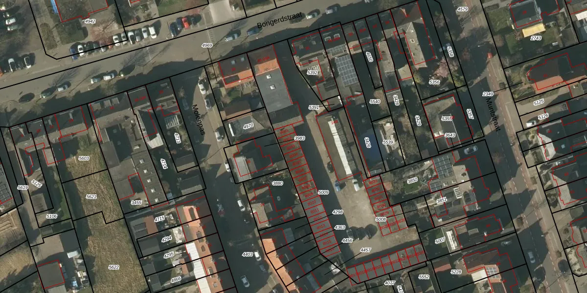Bongerdstraat 8003 is gelegen op kadastraal perceel TGL00C5009. Deze kadastrale aanduiding is uniek en wordt gebruikt door het Kadaster om eigendomsrechten en andere zakelijke rechten vast te leggen. Het perceel maakt onderdeel uit van de kadastrale gemeente Tegelen.