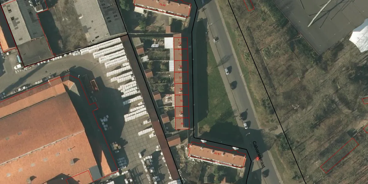 Het perceel waarop Calvariestraat 65 staat heeft een oppervlakte van 1,1 ha. Dit is een zeer groot perceel. De perceeloppervlakte wordt geregistreerd door het Kadaster. Gedetailleerde informatie over de maten van dit perceel kunt u vinden in het rapport Kadastrale kaart met maatvoering van Calvariestraat 65.