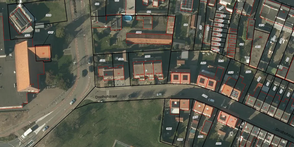 Doolhofstraat 32 is gelegen op kadastraal perceel TGL00D2003. Deze kadastrale aanduiding is uniek en wordt gebruikt door het Kadaster om eigendomsrechten en andere zakelijke rechten vast te leggen. Het perceel maakt onderdeel uit van de kadastrale gemeente Tegelen.