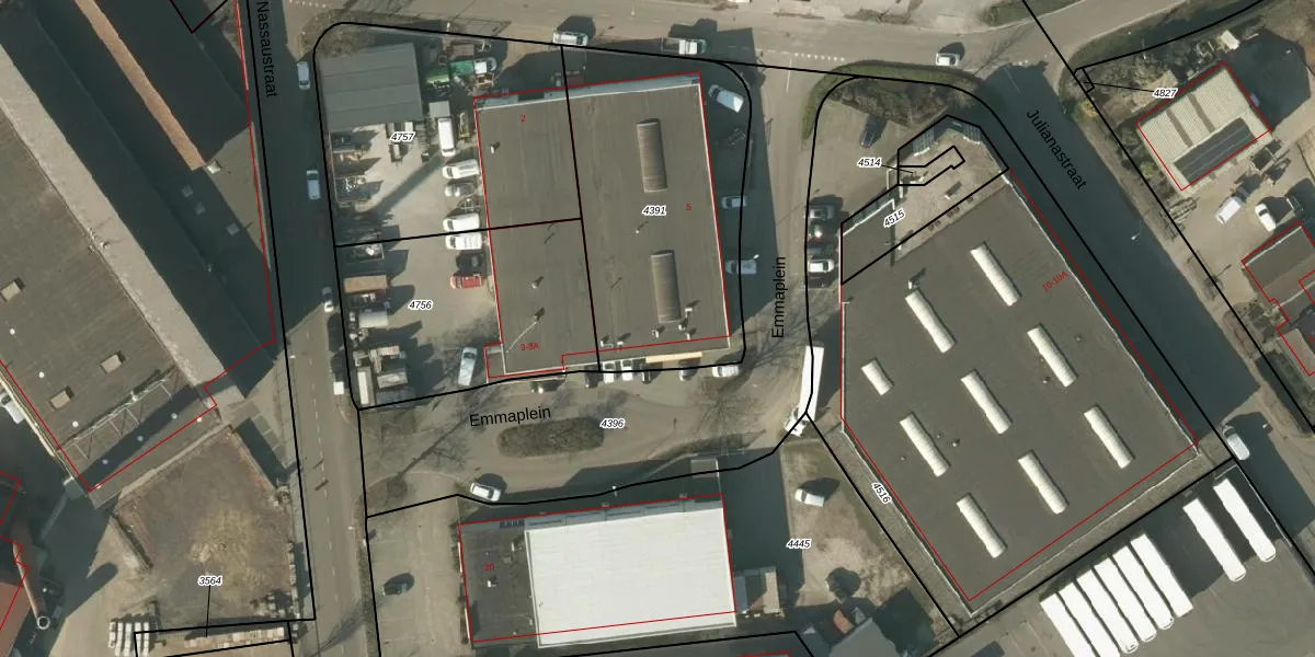 Emmaplein 5 is gelegen op kadastraal perceel TGL00B4391. Deze kadastrale aanduiding is uniek en wordt gebruikt door het Kadaster om eigendomsrechten en andere zakelijke rechten vast te leggen. Het perceel maakt onderdeel uit van de kadastrale gemeente Tegelen.
