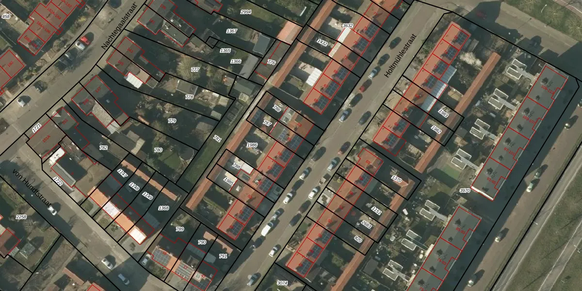 Het perceel waarop Holtmühlestraat 61 staat heeft een oppervlakte van 145 m². Dit is een middelgroot perceel. De perceeloppervlakte wordt geregistreerd door het Kadaster. Gedetailleerde informatie over de maten van dit perceel kunt u vinden in het rapport Kadastrale kaart met maatvoering van Holtmühlestraat 61.