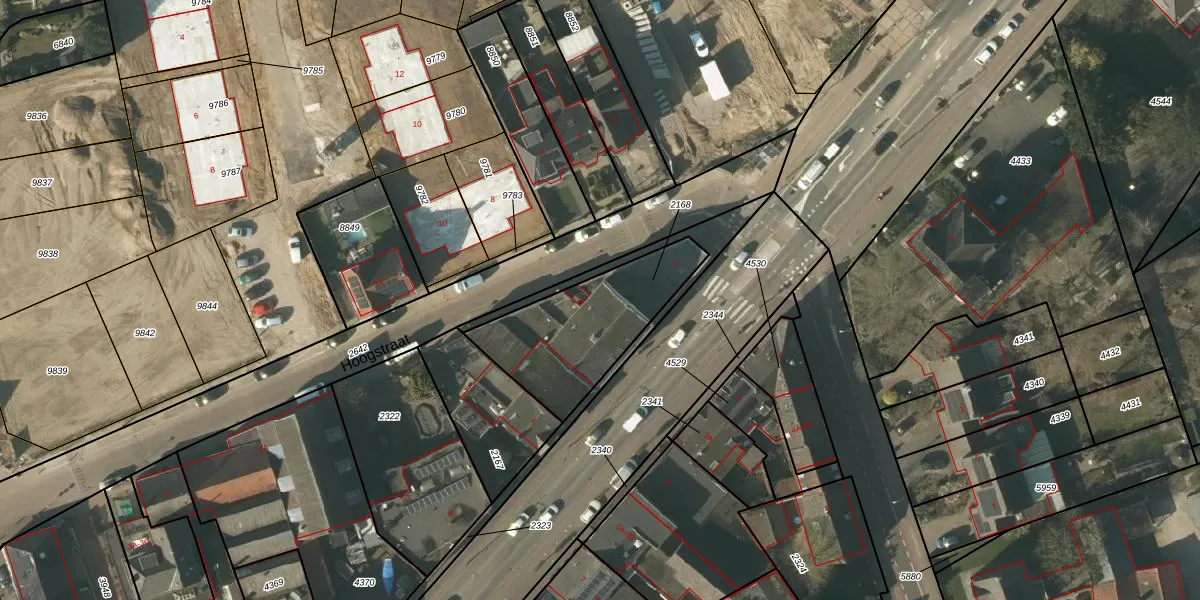 Hoogstraat 1-B2 is gelegen op kadastraal perceel TGL00B2168. Deze kadastrale aanduiding is uniek en wordt gebruikt door het Kadaster om eigendomsrechten en andere zakelijke rechten vast te leggen. Het perceel maakt onderdeel uit van de kadastrale gemeente Tegelen.