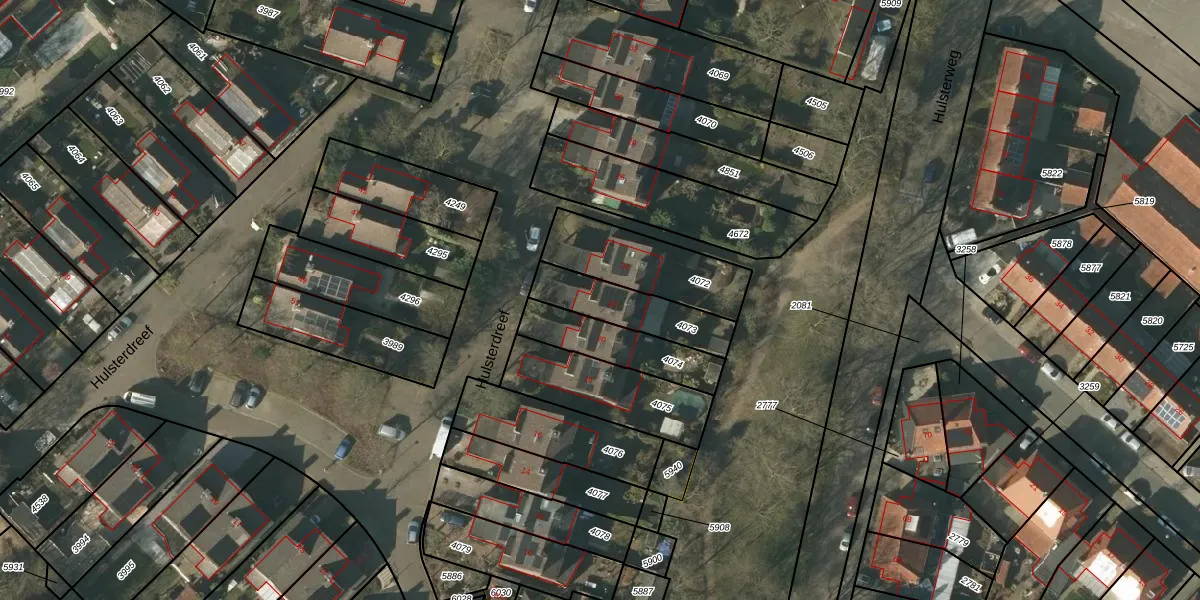 Hulsterdreef 22 is gelegen op kadastraal perceel TGL00B4073. Deze kadastrale aanduiding is uniek en wordt gebruikt door het Kadaster om eigendomsrechten en andere zakelijke rechten vast te leggen. Het perceel maakt onderdeel uit van de kadastrale gemeente Tegelen.