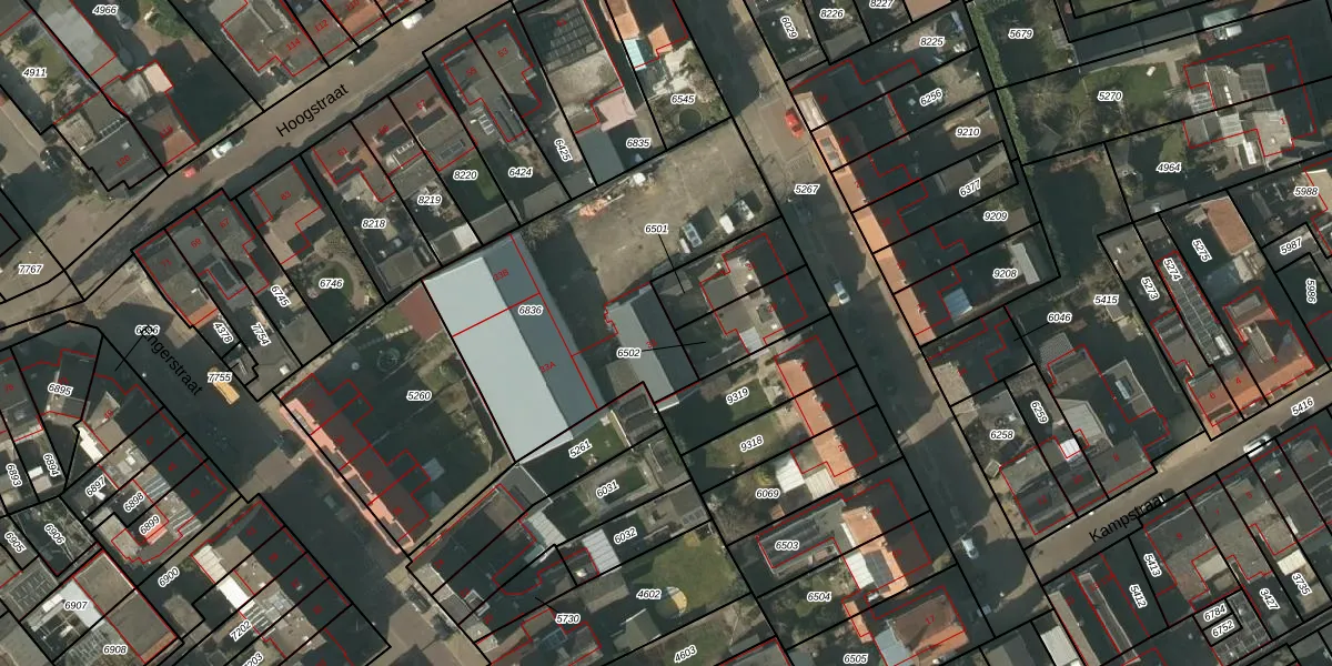 Kampstraat 33 is gelegen op kadastraal perceel TGL00A6836. Deze kadastrale aanduiding is uniek en wordt gebruikt door het Kadaster om eigendomsrechten en andere zakelijke rechten vast te leggen. Het perceel maakt onderdeel uit van de kadastrale gemeente Tegelen.