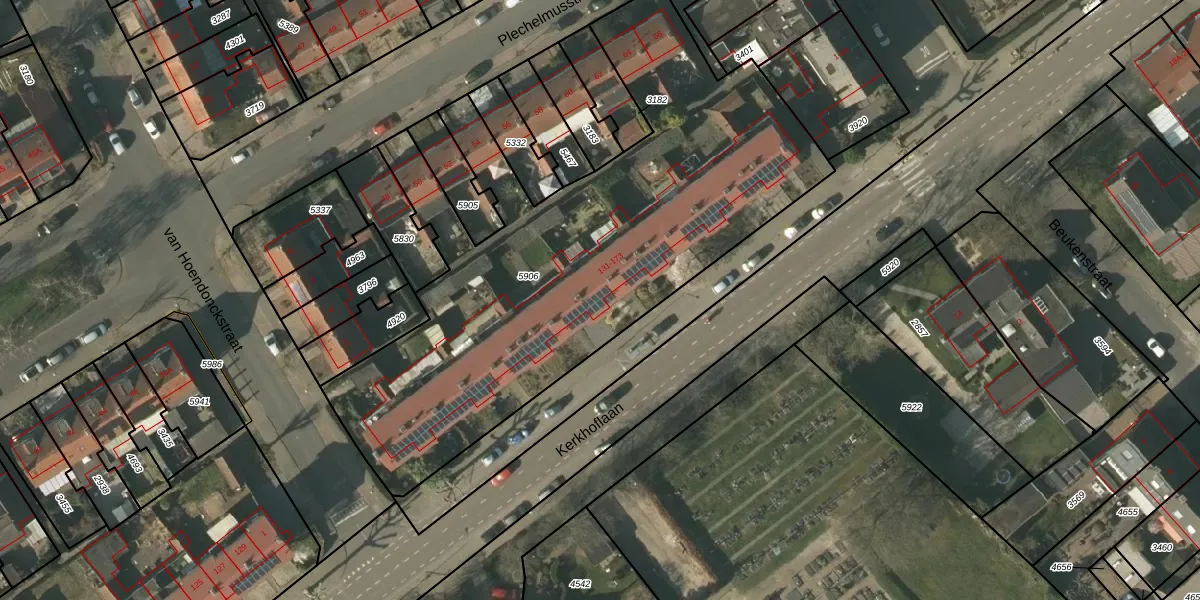 Kerkhoflaan 153 is gelegen op kadastraal perceel TGL00B5906. Deze kadastrale aanduiding is uniek en wordt gebruikt door het Kadaster om eigendomsrechten en andere zakelijke rechten vast te leggen. Het perceel maakt onderdeel uit van de kadastrale gemeente Tegelen.