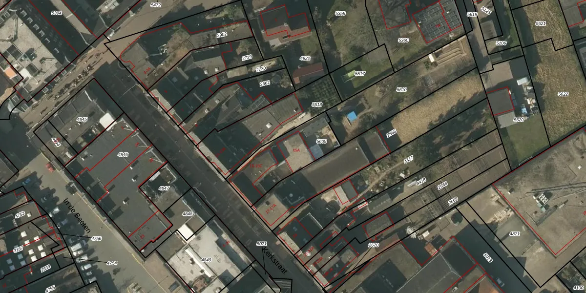 Kerkstraat 15-A is gelegen op kadastraal perceel TGL00C5609. Deze kadastrale aanduiding is uniek en wordt gebruikt door het Kadaster om eigendomsrechten en andere zakelijke rechten vast te leggen. Het perceel maakt onderdeel uit van de kadastrale gemeente Tegelen.