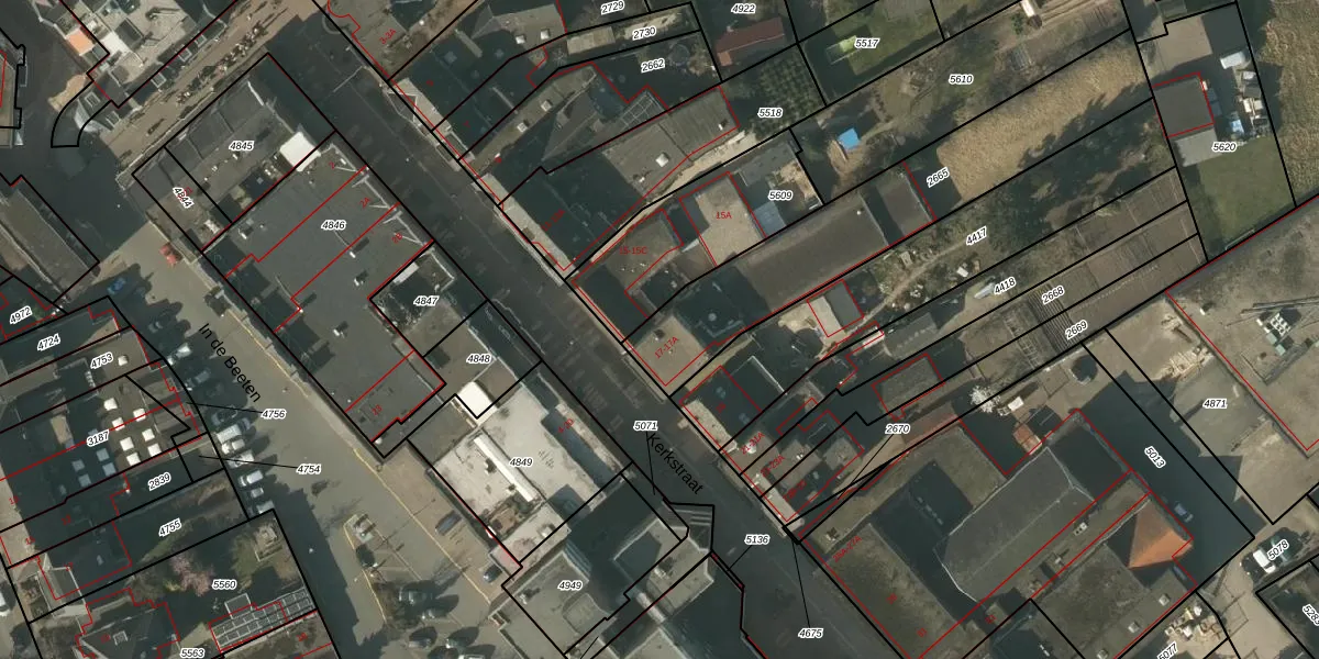 Het perceel waarop Kerkstraat 17-A staat heeft een oppervlakte van 965 m². Dit is een groot perceel. De perceeloppervlakte wordt geregistreerd door het Kadaster. Gedetailleerde informatie over de maten van dit perceel kunt u vinden in het rapport Kadastrale kaart met maatvoering van Kerkstraat 17-A.