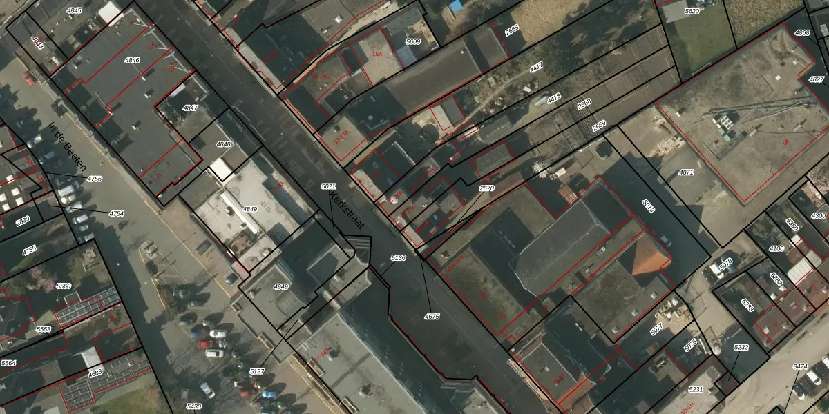 Kerkstraat 23-A is gelegen op kadastraal perceel TGL00C2668. Deze kadastrale aanduiding is uniek en wordt gebruikt door het Kadaster om eigendomsrechten en andere zakelijke rechten vast te leggen. Het perceel maakt onderdeel uit van de kadastrale gemeente Tegelen.