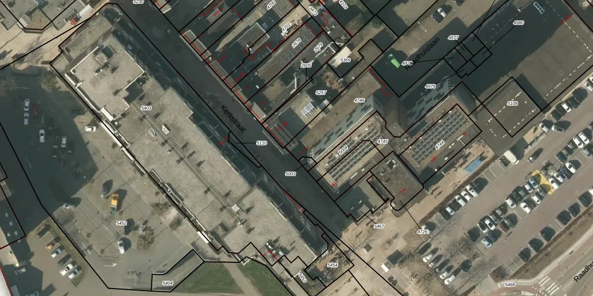 Het perceel waarop Kerkstraat 57 staat heeft een oppervlakte van 2000 m². Dit is een zeer groot perceel. De perceeloppervlakte wordt geregistreerd door het Kadaster. Gedetailleerde informatie over de maten van dit perceel kunt u vinden in het rapport Kadastrale kaart met maatvoering van Kerkstraat 57.