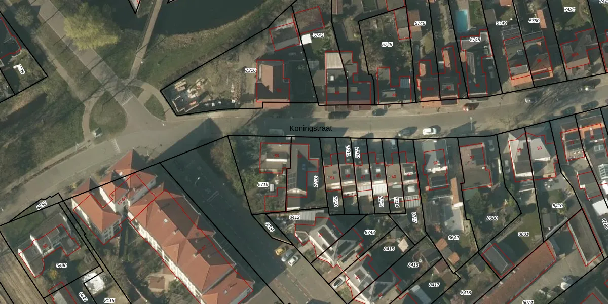Koningstraat 53 is gelegen op kadastraal perceel TGL00A7216. Deze kadastrale aanduiding is uniek en wordt gebruikt door het Kadaster om eigendomsrechten en andere zakelijke rechten vast te leggen. Het perceel maakt onderdeel uit van de kadastrale gemeente Tegelen.
