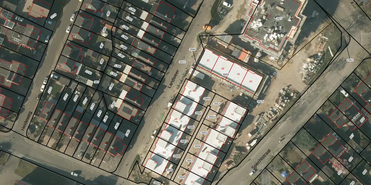 Het perceel waarop Landweer 45 staat heeft een oppervlakte van 159 m². Dit is een middelgroot perceel. De perceeloppervlakte wordt geregistreerd door het Kadaster. Gedetailleerde informatie over de maten van dit perceel kunt u vinden in het rapport Kadastrale kaart met maatvoering van Landweer 45.