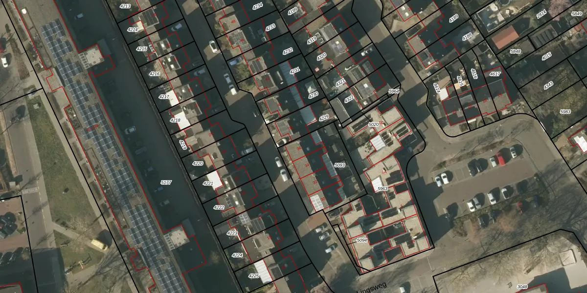 Het perceel waarop Lingsweg 36 staat heeft een oppervlakte van 565 m². Dit is een groot perceel. De perceeloppervlakte wordt geregistreerd door het Kadaster. Gedetailleerde informatie over de maten van dit perceel kunt u vinden in het rapport Kadastrale kaart met maatvoering van Lingsweg 36.