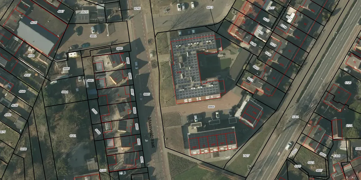 Maasveldstraat 4 is gelegen op kadastraal perceel TGL00A8866. Deze kadastrale aanduiding is uniek en wordt gebruikt door het Kadaster om eigendomsrechten en andere zakelijke rechten vast te leggen. Het perceel maakt onderdeel uit van de kadastrale gemeente Tegelen.