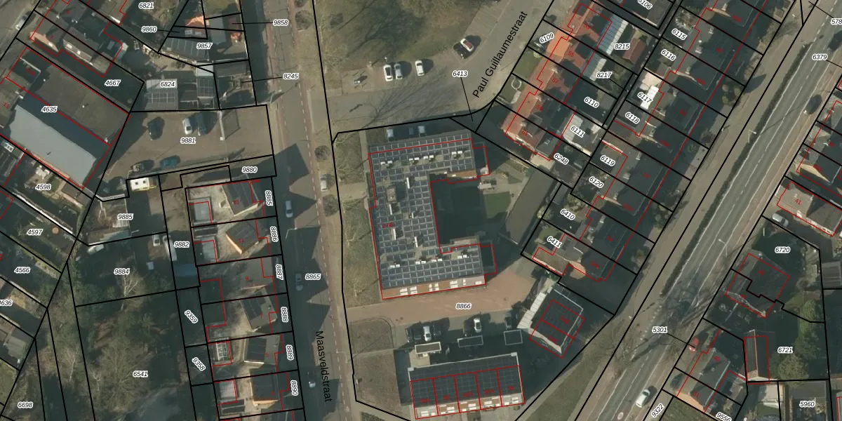 Maasveldstraat 50 is gelegen op kadastraal perceel TGL00A8866. Deze kadastrale aanduiding is uniek en wordt gebruikt door het Kadaster om eigendomsrechten en andere zakelijke rechten vast te leggen. Het perceel maakt onderdeel uit van de kadastrale gemeente Tegelen.