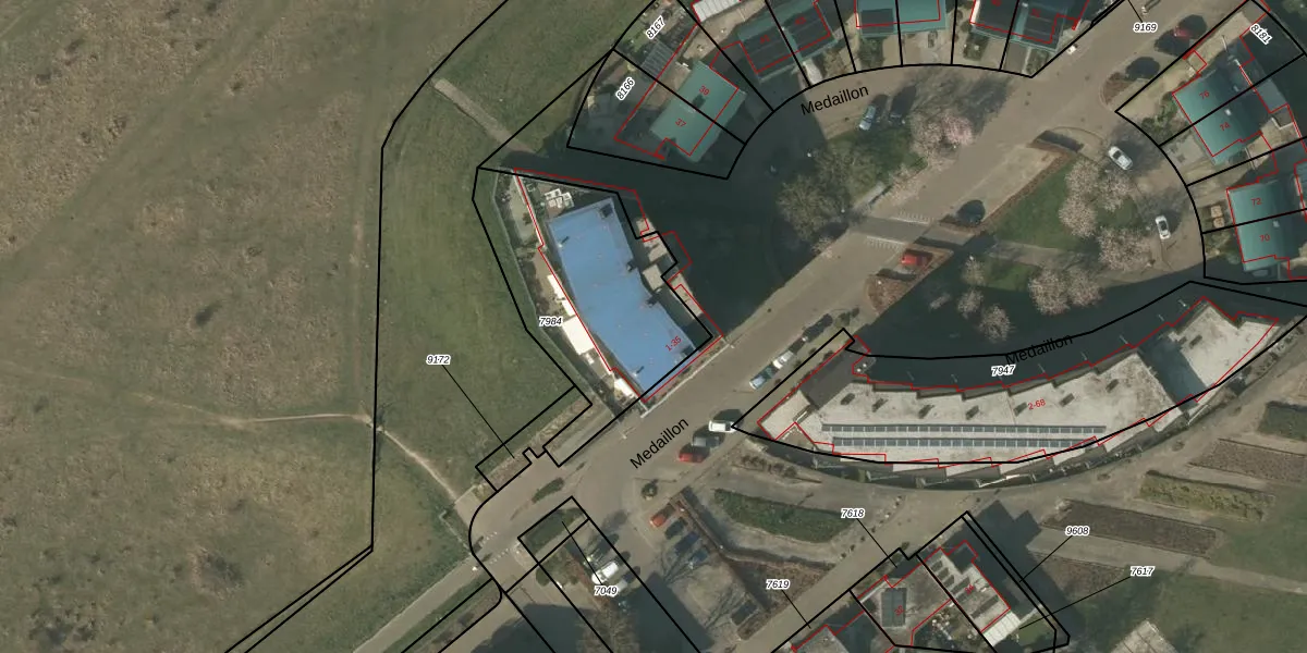 Het perceel waarop Medaillon 13 staat heeft een oppervlakte van 820 m². Dit is een groot perceel. De perceeloppervlakte wordt geregistreerd door het Kadaster. Gedetailleerde informatie over de maten van dit perceel kunt u vinden in het rapport Kadastrale kaart met maatvoering van Medaillon 13.