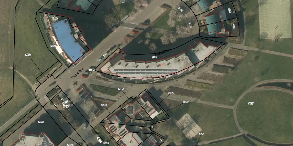 Het perceel waarop Medaillon 40 staat heeft een oppervlakte van 1300 m². Dit is een zeer groot perceel. De perceeloppervlakte wordt geregistreerd door het Kadaster. Gedetailleerde informatie over de maten van dit perceel kunt u vinden in het rapport Kadastrale kaart met maatvoering van Medaillon 40.