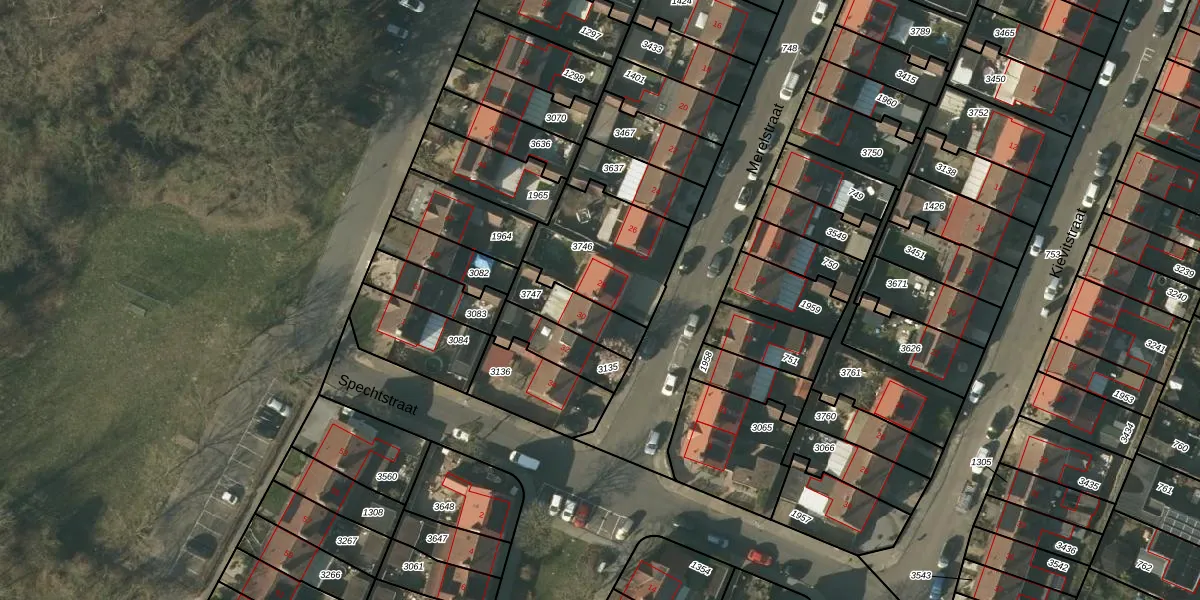 Het perceel waarop Merelstraat 28 staat heeft een oppervlakte van 396 m². Dit is een groot perceel. De perceeloppervlakte wordt geregistreerd door het Kadaster. Gedetailleerde informatie over de maten van dit perceel kunt u vinden in het rapport Kadastrale kaart met maatvoering van Merelstraat 28.