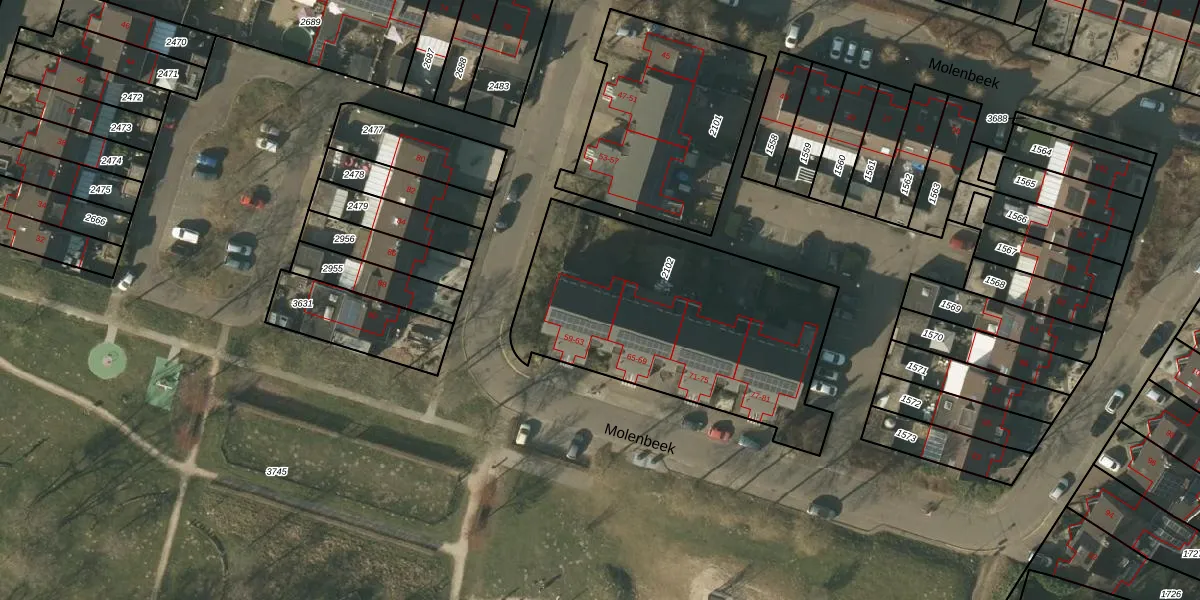 Het perceel waarop Molenbeek 63 staat heeft een oppervlakte van 1325 m². Dit is een zeer groot perceel. De perceeloppervlakte wordt geregistreerd door het Kadaster. Gedetailleerde informatie over de maten van dit perceel kunt u vinden in het rapport Kadastrale kaart met maatvoering van Molenbeek 63.
