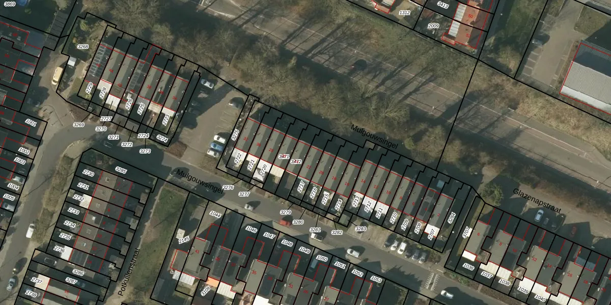 Het perceel waarop Mulgouwsingel 24 staat heeft een oppervlakte van 116 m². Dit is een middelgroot perceel. De perceeloppervlakte wordt geregistreerd door het Kadaster. Gedetailleerde informatie over de maten van dit perceel kunt u vinden in het rapport Kadastrale kaart met maatvoering van Mulgouwsingel 24.