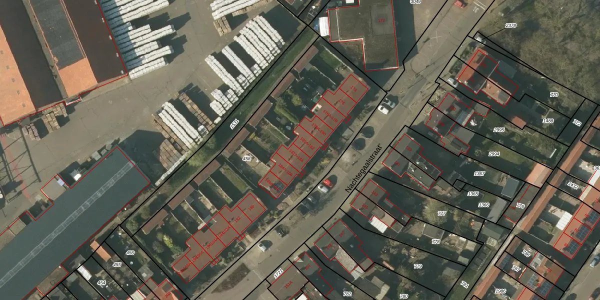 Nachtegaalstraat 182-A is gelegen op kadastraal perceel TGL00D458. Deze kadastrale aanduiding is uniek en wordt gebruikt door het Kadaster om eigendomsrechten en andere zakelijke rechten vast te leggen. Het perceel maakt onderdeel uit van de kadastrale gemeente Tegelen.