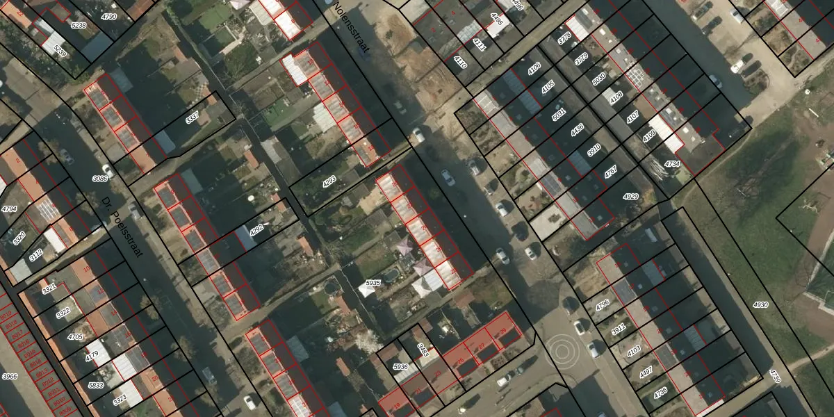 Het perceel waarop Nolensstraat 22 staat heeft een oppervlakte van 6413 m². Dit is een zeer groot perceel. De perceeloppervlakte wordt geregistreerd door het Kadaster. Gedetailleerde informatie over de maten van dit perceel kunt u vinden in het rapport Kadastrale kaart met maatvoering van Nolensstraat 22.