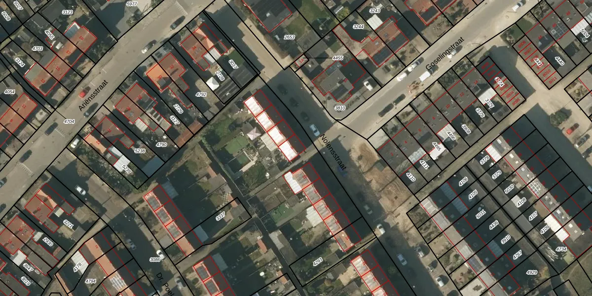 Het perceel waarop Nolensstraat 8 staat heeft een oppervlakte van 6413 m². Dit is een zeer groot perceel. De perceeloppervlakte wordt geregistreerd door het Kadaster. Gedetailleerde informatie over de maten van dit perceel kunt u vinden in het rapport Kadastrale kaart met maatvoering van Nolensstraat 8.