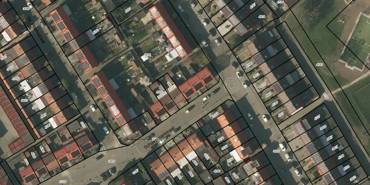Het perceel waarop Schaepmanstraat 25 staat heeft een oppervlakte van 6413 m². Dit is een zeer groot perceel. De perceeloppervlakte wordt geregistreerd door het Kadaster. Gedetailleerde informatie over de maten van dit perceel kunt u vinden in het rapport Kadastrale kaart met maatvoering van Schaepmanstraat 25.