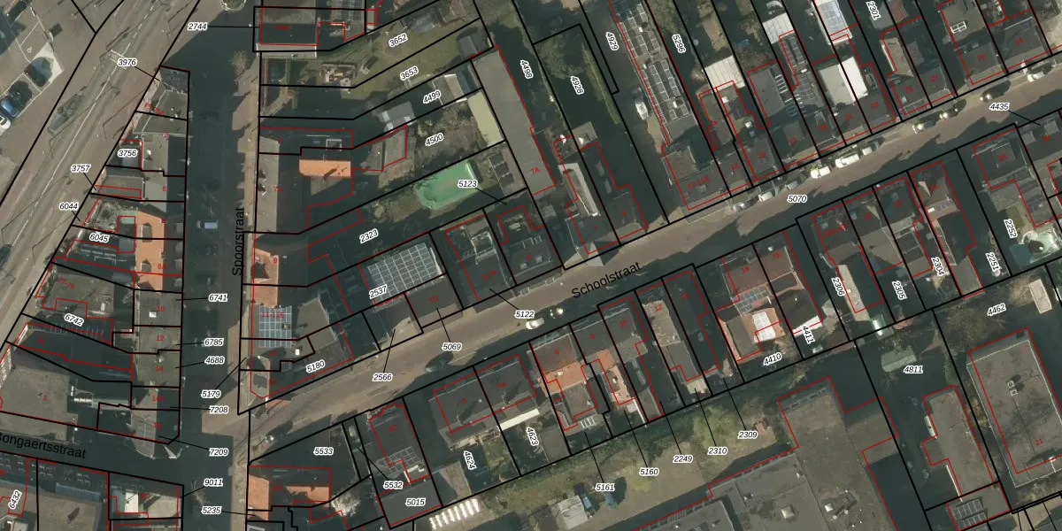 Schoolstraat 5 is gelegen op kadastraal perceel TGL00C5123. Deze kadastrale aanduiding is uniek en wordt gebruikt door het Kadaster om eigendomsrechten en andere zakelijke rechten vast te leggen. Het perceel maakt onderdeel uit van de kadastrale gemeente Tegelen.