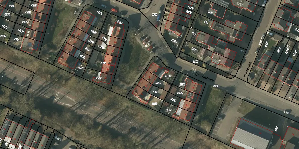 Spechtstraat 40 is gelegen op kadastraal perceel TGL00D3540. Deze kadastrale aanduiding is uniek en wordt gebruikt door het Kadaster om eigendomsrechten en andere zakelijke rechten vast te leggen. Het perceel maakt onderdeel uit van de kadastrale gemeente Tegelen.
