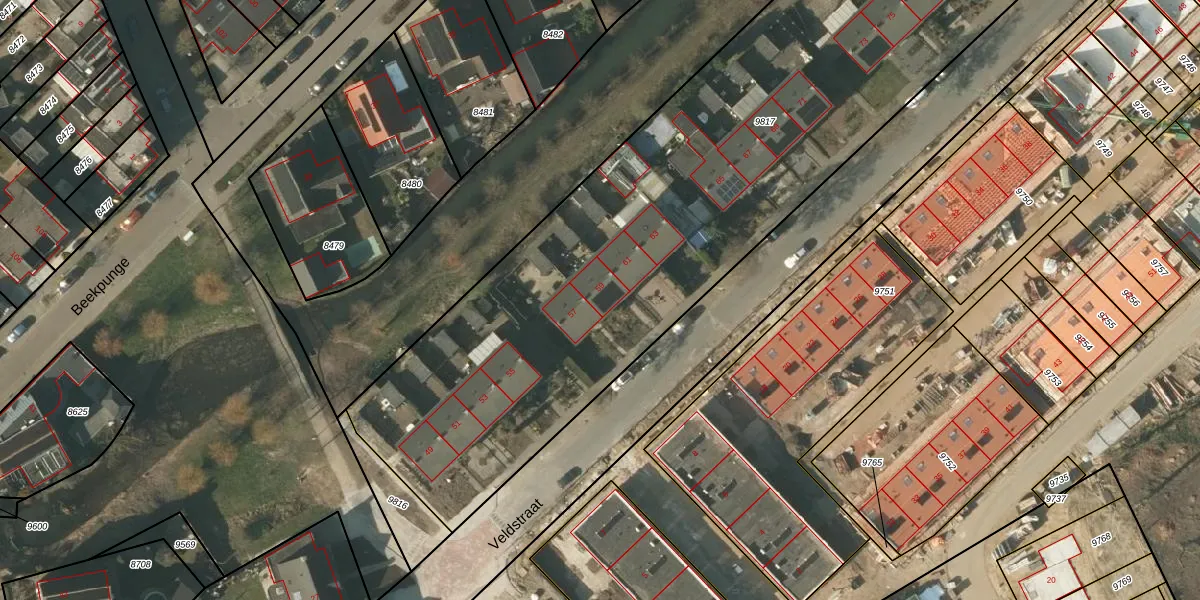 Veldstraat 59 is gelegen op kadastraal perceel TGL00A9817. Deze kadastrale aanduiding is uniek en wordt gebruikt door het Kadaster om eigendomsrechten en andere zakelijke rechten vast te leggen. Het perceel maakt onderdeel uit van de kadastrale gemeente Tegelen.