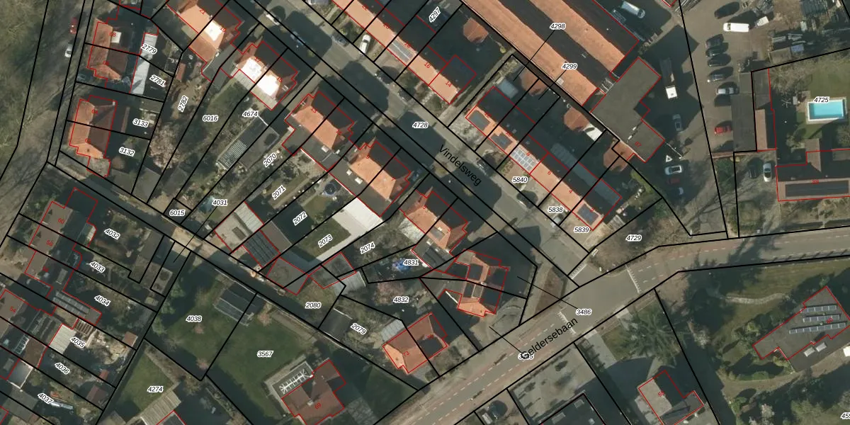 Vindelsweg 5 is gelegen op kadastraal perceel TGL00B2074. Deze kadastrale aanduiding is uniek en wordt gebruikt door het Kadaster om eigendomsrechten en andere zakelijke rechten vast te leggen. Het perceel maakt onderdeel uit van de kadastrale gemeente Tegelen.