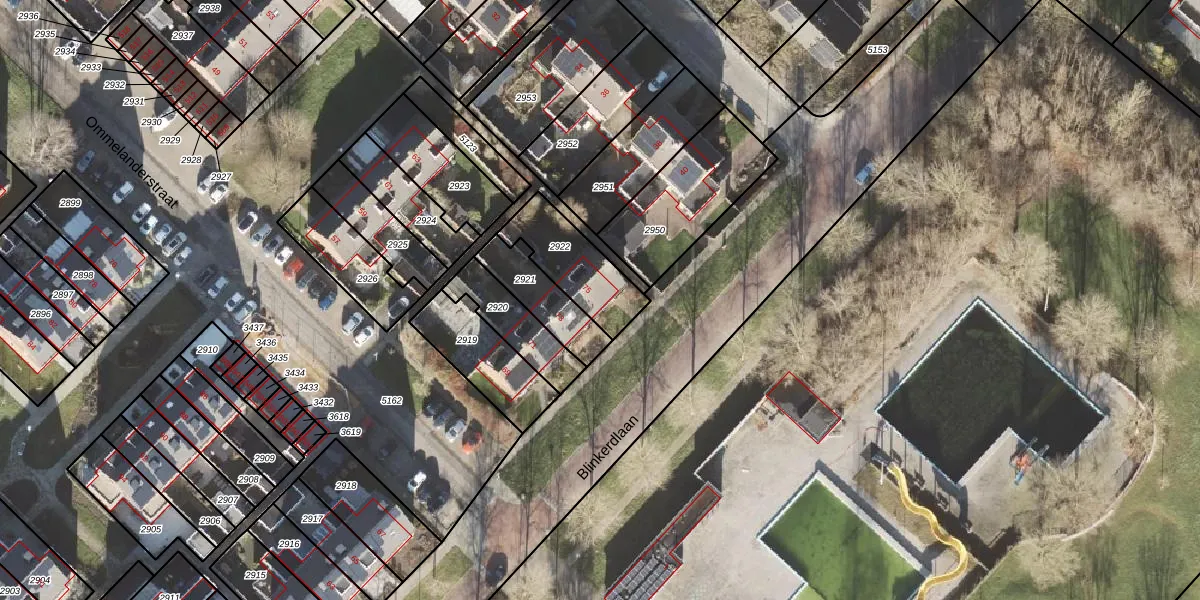 Gebruik de zoekbalk of klik op een perceel voor informatie over de adressen binnen dit perceel.
