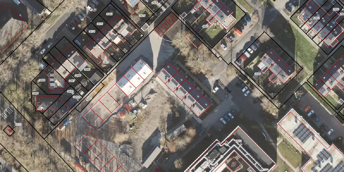 Het perceel waarop Bloemhof 10 staat heeft een oppervlakte van 2,2 ha. Dit is een zeer groot perceel. De perceeloppervlakte wordt geregistreerd door het Kadaster. Gedetailleerde informatie over de maten van dit perceel kunt u vinden in het rapport Kadastrale kaart met maatvoering van Bloemhof 10.