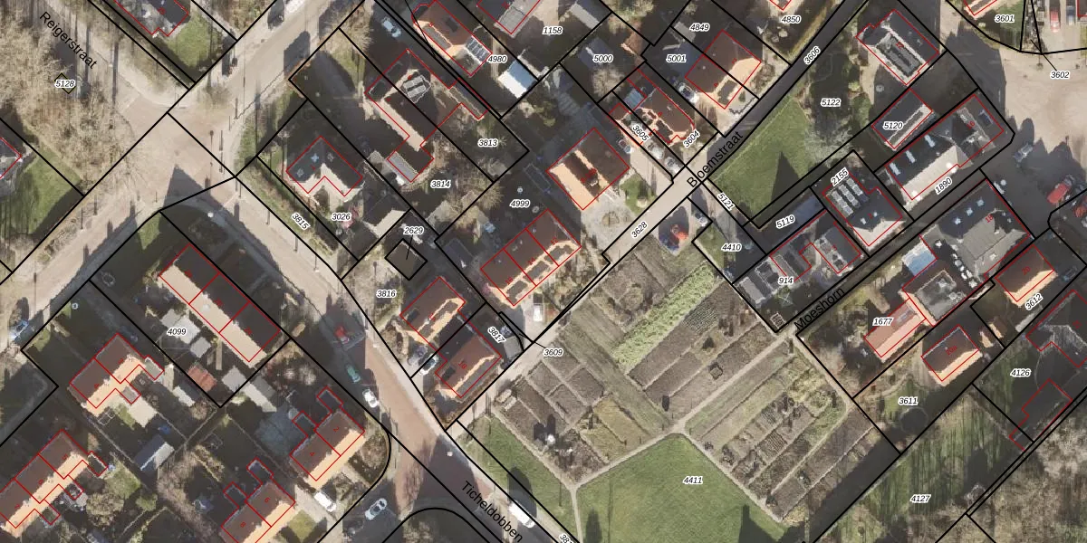 Het perceel waarop Bloemstraat 14 staat heeft een oppervlakte van 1086 m². Dit is een zeer groot perceel. De perceeloppervlakte wordt geregistreerd door het Kadaster. Gedetailleerde informatie over de maten van dit perceel kunt u vinden in het rapport Kadastrale kaart met maatvoering van Bloemstraat 14.