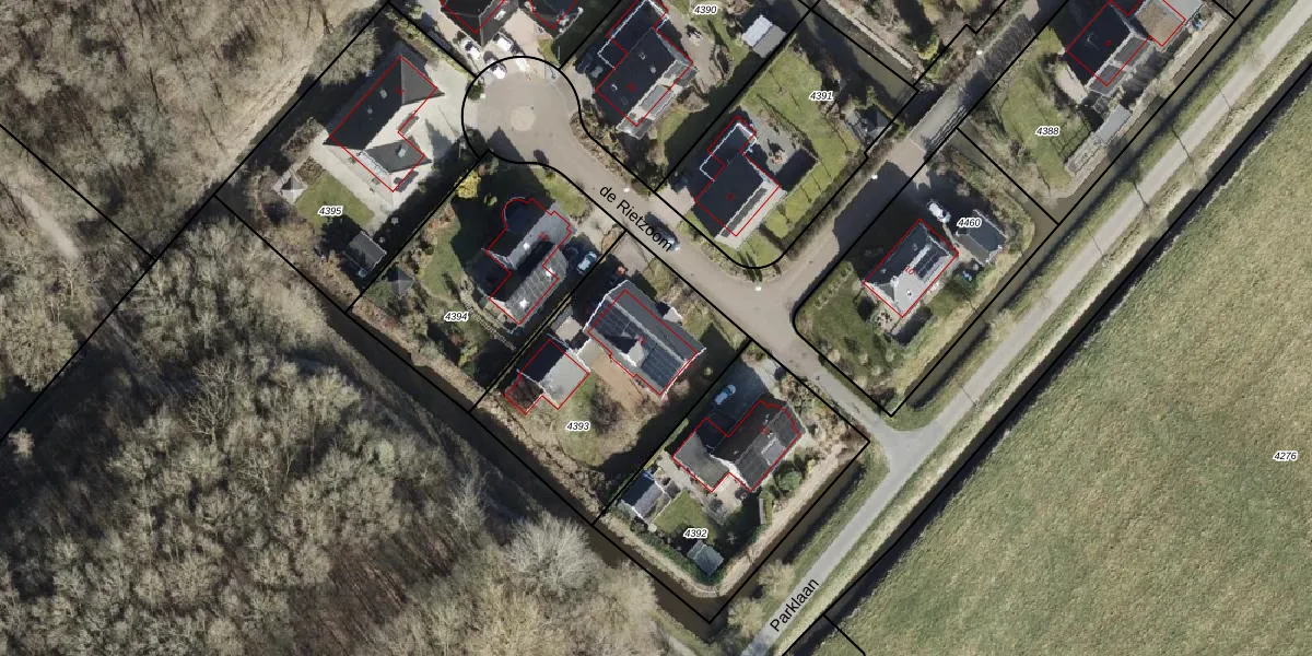 Het perceel waarop de Rietzoom 12 staat heeft een oppervlakte van 943 m². Dit is een groot perceel. De perceeloppervlakte wordt geregistreerd door het Kadaster. Gedetailleerde informatie over de maten van dit perceel kunt u vinden in het rapport Kadastrale kaart met maatvoering van de Rietzoom 12.