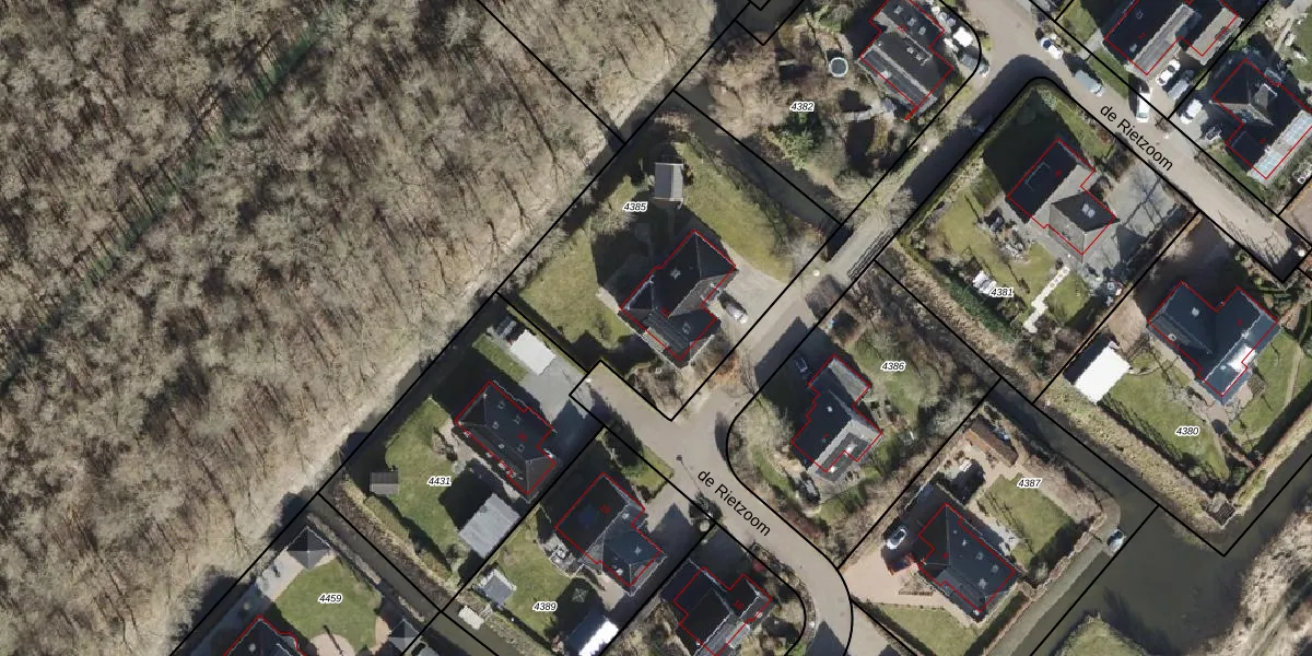 Het perceel waarop de Rietzoom 21 staat heeft een oppervlakte van 1340 m². Dit is een zeer groot perceel. De perceeloppervlakte wordt geregistreerd door het Kadaster. Gedetailleerde informatie over de maten van dit perceel kunt u vinden in het rapport Kadastrale kaart met maatvoering van de Rietzoom 21.