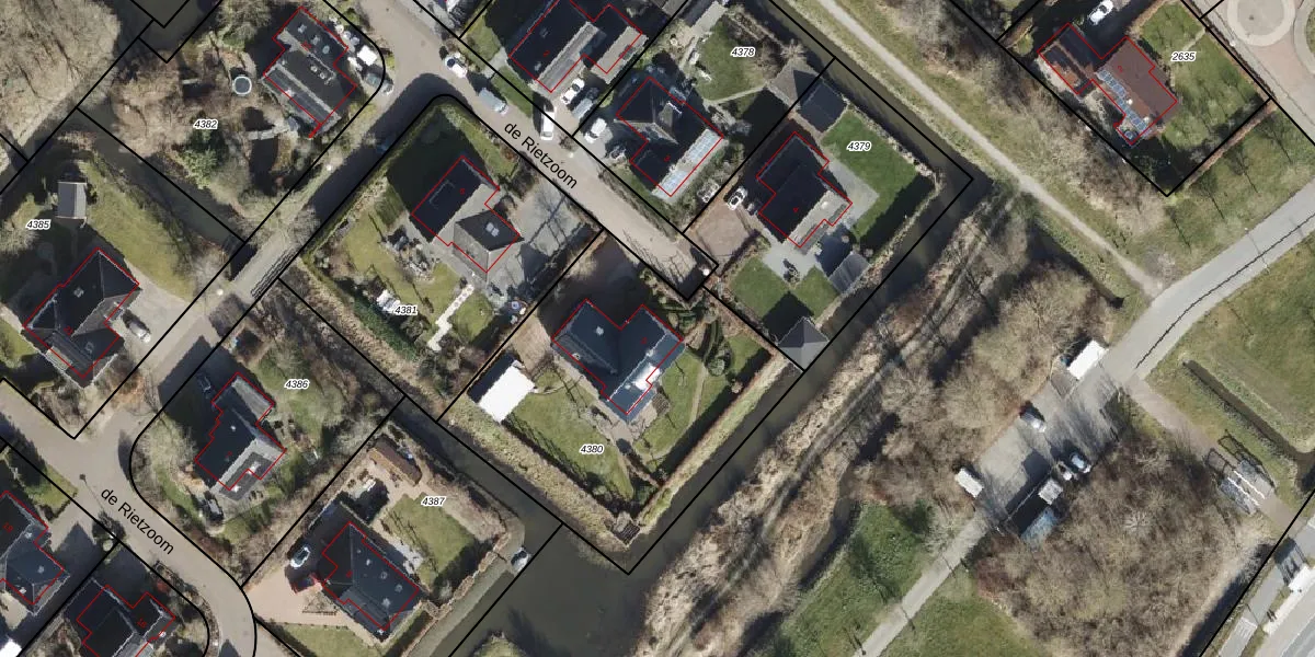 de Rietzoom 5 is gelegen op kadastraal perceel BOE00A4380. Deze kadastrale aanduiding is uniek en wordt gebruikt door het Kadaster om eigendomsrechten en andere zakelijke rechten vast te leggen. Het perceel maakt onderdeel uit van de kadastrale gemeente ten Boer.