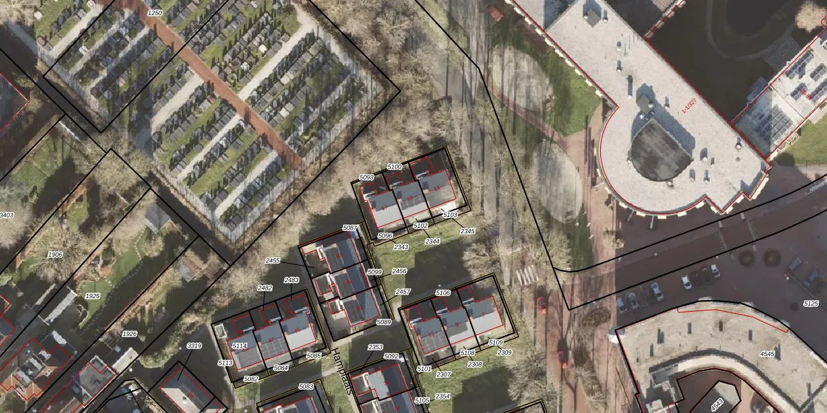 Gebruik de zoekbalk of klik op een perceel voor informatie over de adressen binnen dit perceel.