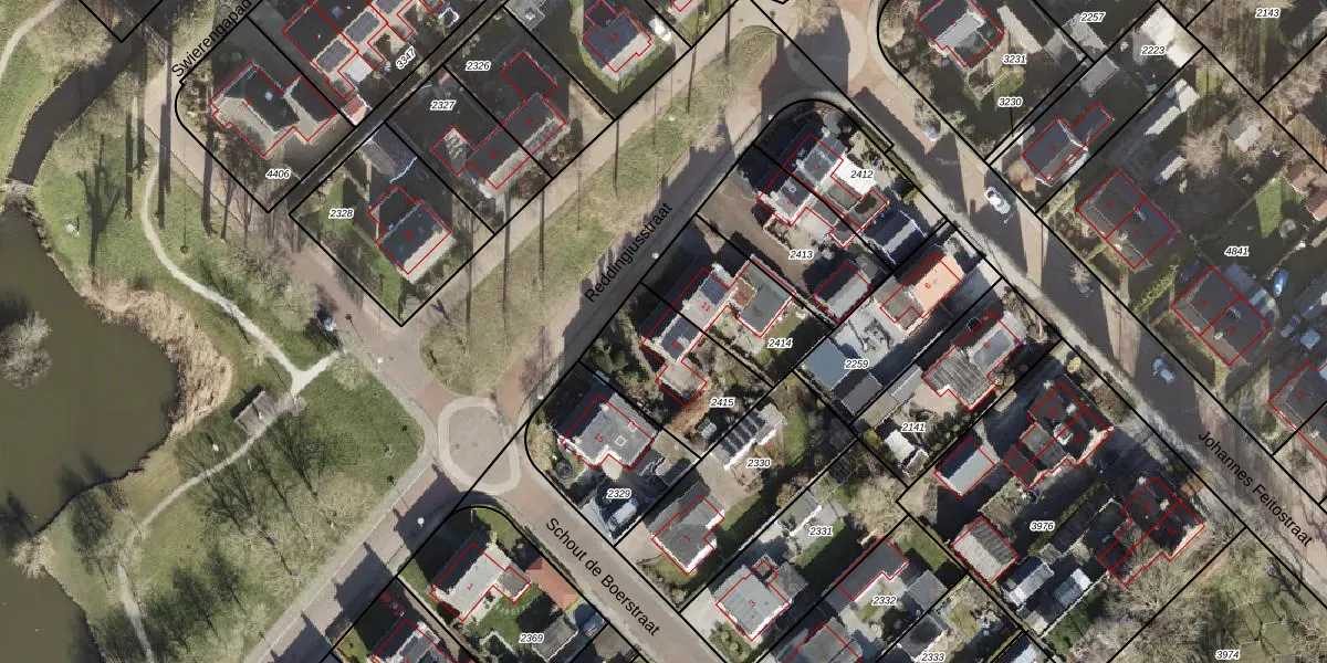 Het perceel waarop Reddingiusstraat 13 staat heeft een oppervlakte van 371 m². Dit is een groot perceel. De perceeloppervlakte wordt geregistreerd door het Kadaster. Gedetailleerde informatie over de maten van dit perceel kunt u vinden in het rapport Kadastrale kaart met maatvoering van Reddingiusstraat 13.