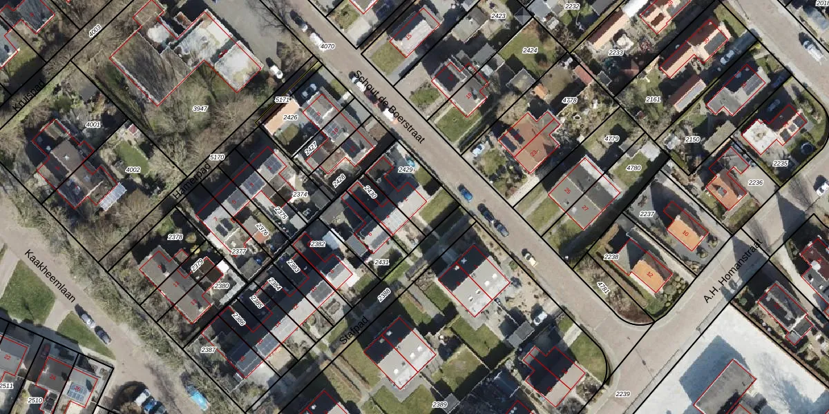 Het perceel waarop het adres ligt is BOE00-A-2429. De afkorting 'BOE00' staat voor kadastrale gemeente ten Boer. De gemiddelde perceelgrootte in ten Boer is 8517,35 m². Dit perceel is kleiner: de perceeloppervlakte bedraagt 245 m². De grootste perceeloppervlakte in de kadastrale gemeente is 36,2 ha. De kleinste oppervlakte bedraagt 0 m². Dit is het enige adres dat aanwezig is op het perceel. De laatste wijziging in het de Basisregistratie Kadaster (BRK) was op 02-02-1999.