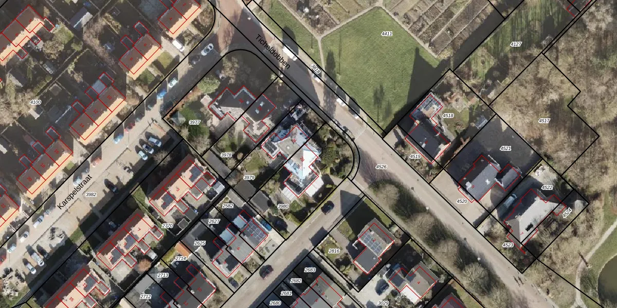 Gebruik de zoekbalk of klik op een perceel voor informatie over de adressen binnen dit perceel.