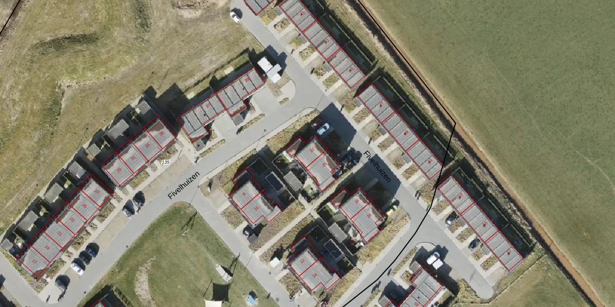 Het perceel waarop Fivelhuizen 22 staat heeft een oppervlakte van 2,6 ha. Dit is een zeer groot perceel. De perceeloppervlakte wordt geregistreerd door het Kadaster. Gedetailleerde informatie over de maten van dit perceel kunt u vinden in het rapport Kadastrale kaart met maatvoering van Fivelhuizen 22.