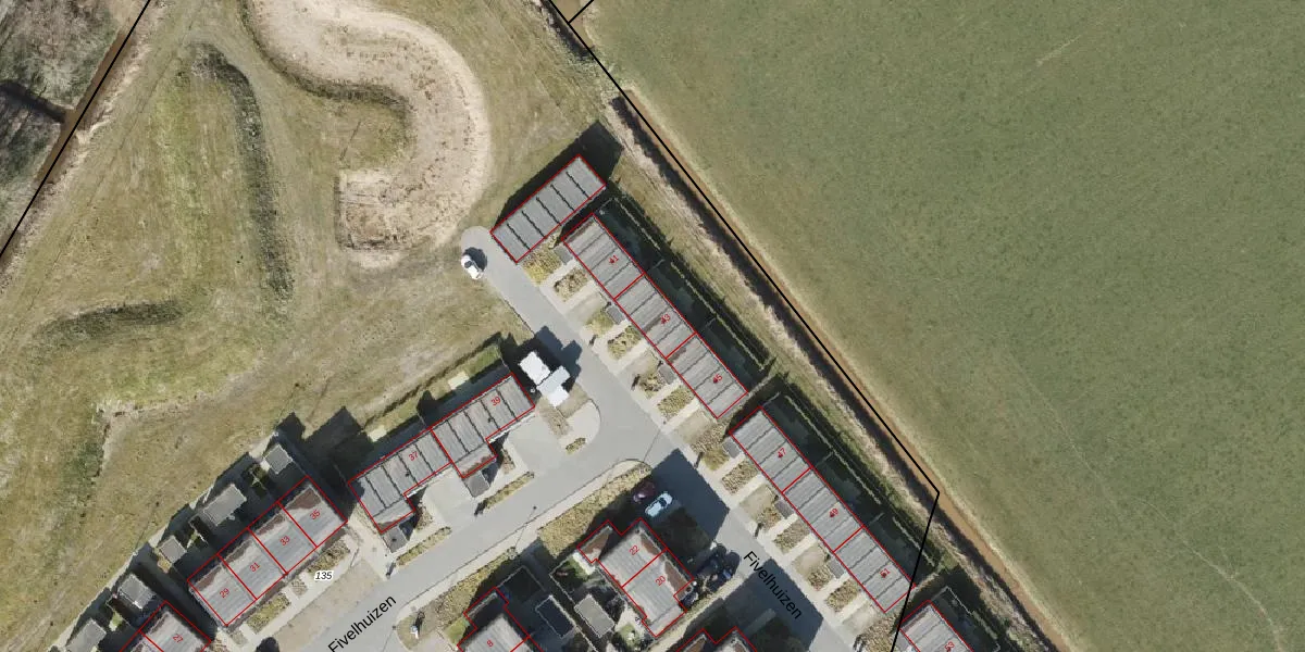 Het perceel waarop Fivelhuizen 43 staat heeft een oppervlakte van 2,6 ha. Dit is een zeer groot perceel. De perceeloppervlakte wordt geregistreerd door het Kadaster. Gedetailleerde informatie over de maten van dit perceel kunt u vinden in het rapport Kadastrale kaart met maatvoering van Fivelhuizen 43.