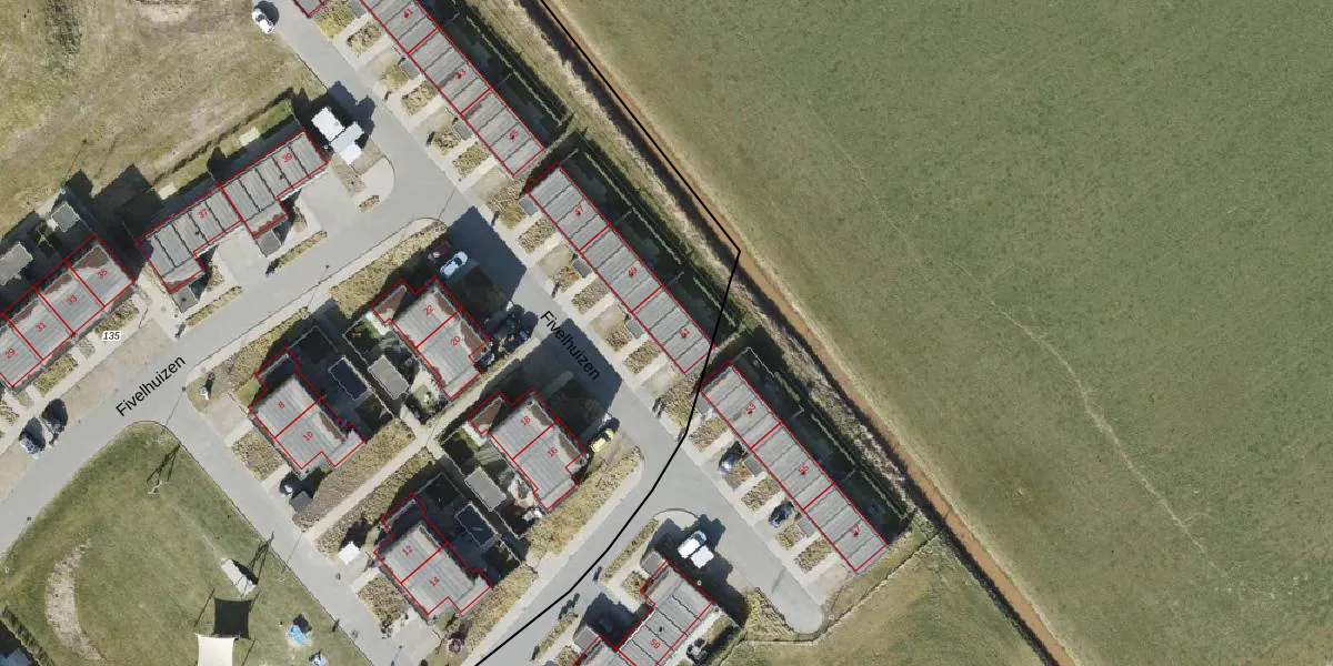 Het perceel waarop Fivelhuizen 51 staat heeft een oppervlakte van 2,6 ha. Dit is een zeer groot perceel. De perceeloppervlakte wordt geregistreerd door het Kadaster. Gedetailleerde informatie over de maten van dit perceel kunt u vinden in het rapport Kadastrale kaart met maatvoering van Fivelhuizen 51.