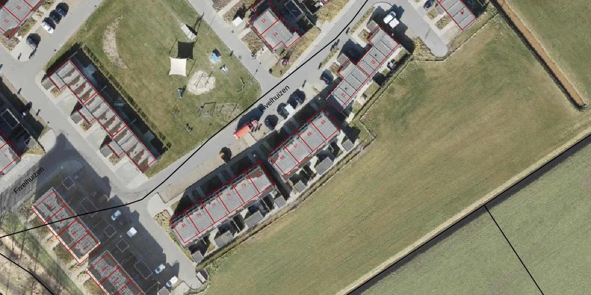 Het perceel waarop Fivelhuizen 67 staat heeft een oppervlakte van 6,6 ha. Dit is een zeer groot perceel. De perceeloppervlakte wordt geregistreerd door het Kadaster. Gedetailleerde informatie over de maten van dit perceel kunt u vinden in het rapport Kadastrale kaart met maatvoering van Fivelhuizen 67.