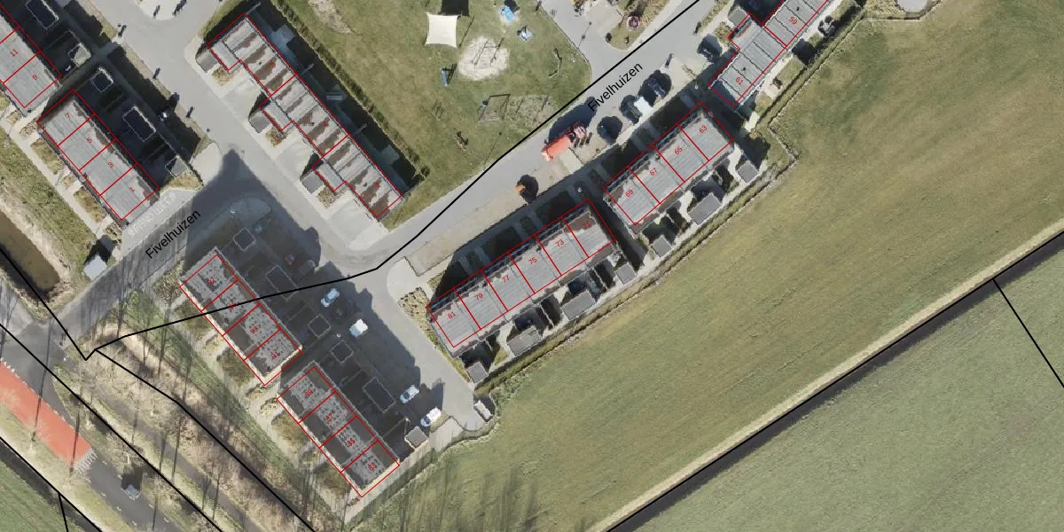 Het perceel waarop Fivelhuizen 75 staat heeft een oppervlakte van 6,6 ha. Dit is een zeer groot perceel. De perceeloppervlakte wordt geregistreerd door het Kadaster. Gedetailleerde informatie over de maten van dit perceel kunt u vinden in het rapport Kadastrale kaart met maatvoering van Fivelhuizen 75.