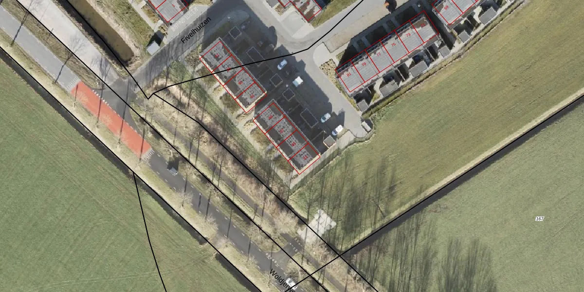 Het perceel waarop Fivelhuizen 85 staat heeft een oppervlakte van 6,6 ha. Dit is een zeer groot perceel. De perceeloppervlakte wordt geregistreerd door het Kadaster. Gedetailleerde informatie over de maten van dit perceel kunt u vinden in het rapport Kadastrale kaart met maatvoering van Fivelhuizen 85.